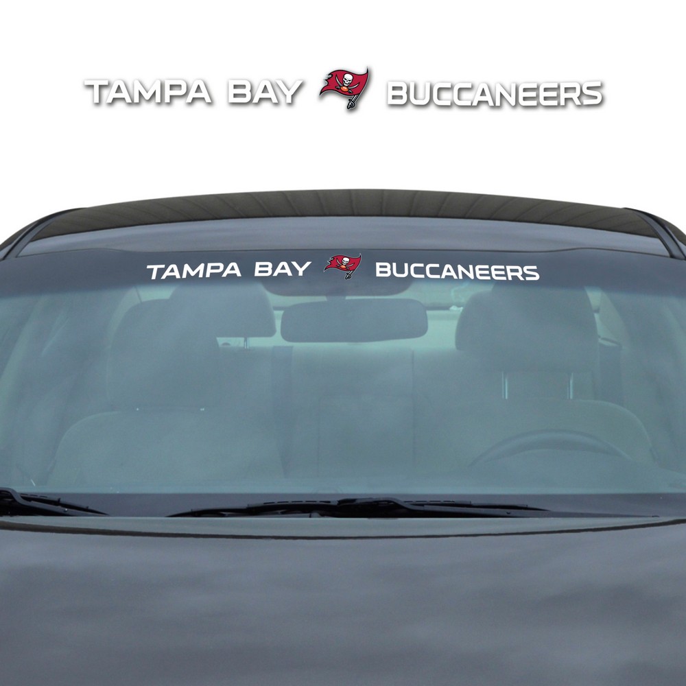| Tampa Bay Buccaneers Sun Stripe Windshield Decal 3.25 in. x 34 in. Premium die cut vinyl decal Features full color team logo and wordmark Designed for a perfect fit on curved windshields Easy to install and remove Officially Licensed Approximately 34in x 3.5in NFL - Tampa Bay Buccaneers in Florida NFL National Football League |