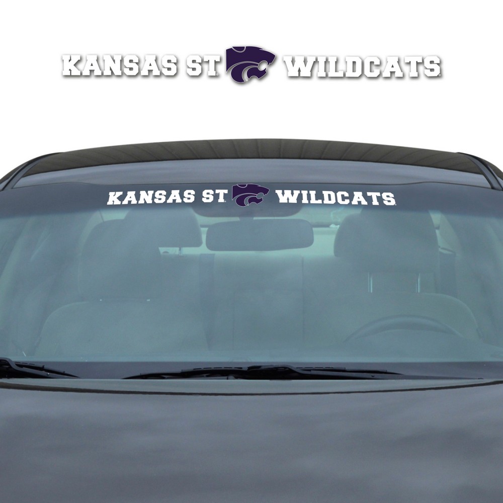| Kansas State Wildcats Sun Stripe Windshield Decal 3.25 in. x 34 in. Premium die cut vinyl decal Features full color team logo and wordmark Designed for a perfect fit on curved windshields Easy to install and remove Officially Licensed Approximately 34in x 3.5in Kansas State University in Kansas |