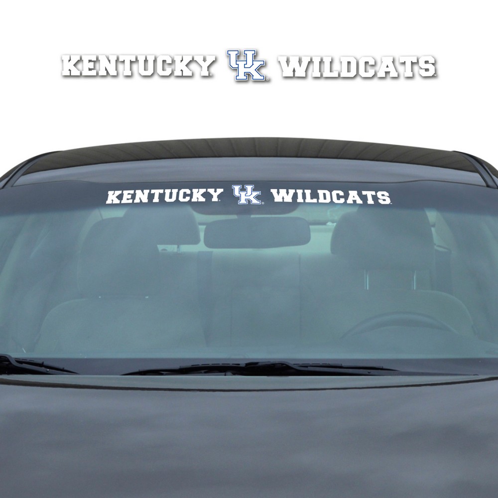 | Kentucky Wildcats Sun Stripe Windshield Decal 3.25 in. x 34 in. Premium die cut vinyl decal Features full color team logo and wordmark Designed for a perfect fit on curved windshields Easy to install and remove Officially Licensed Approximately 34in x 3.5in University of Kentucky in Kentucky |