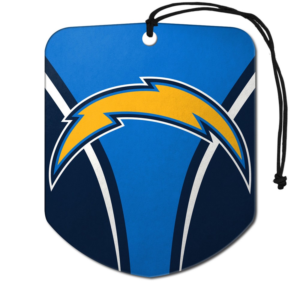 | Los Angeles Chargers 2 Pack Air Freshener Long lasting fresh scent Double sided full color team design includes a bungee string for hanging in your car easily. Includes 2 individually wrapped air fresheners Perfect addition to any vehicle Approximately 2.75in x 3.5in NFL - Los Angeles Chargers in California NFL National Football League |