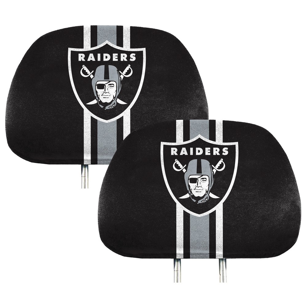 | Las Vegas Raiders Printed Head Rest Cover Set - 2 Pieces Sold in pairs Features a vibrant, full-color team design on the front Solid black backing Headrest cover pair fits any size headrest Easy to install Approximately 14in x 10in NFL - Las Vegas Raiders in Nevada NFL National Football League |