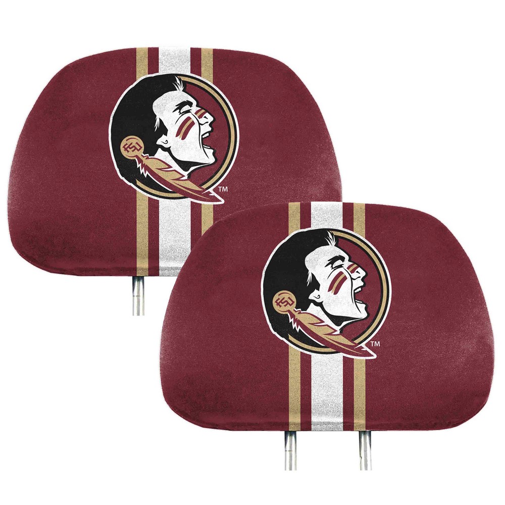 | Florida State Seminoles Printed Head Rest Cover Set - 2 Pieces Sold in pairs Features a vibrant, full-color team design on the front Solid black backing Headrest cover pair fits any size headrest Easy to install Approximately 14in x 10in Florida State University in Florida |