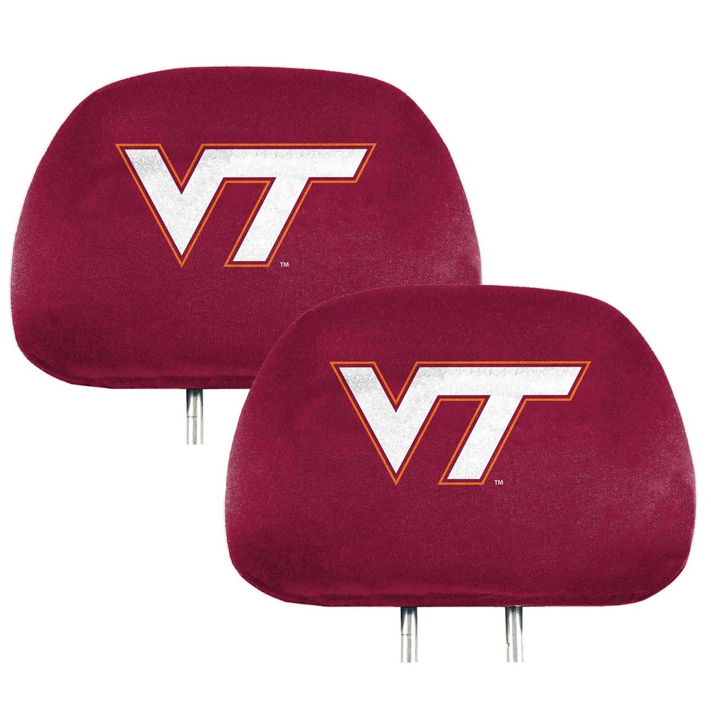 | Virginia Tech Hokies Printed Head Rest Cover Set - 2 Pieces Sold in pairs Features a vibrant, full-color team design on the front Solid black backing Headrest cover pair fits any size headrest Easy to install Approximately 14in x 10in Virginia Tech in Virginia |