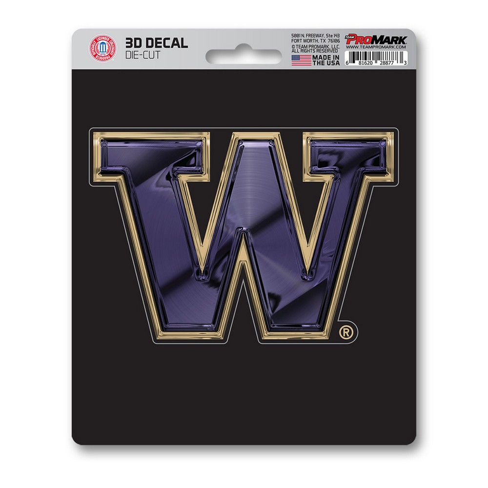 | Washington Huskies 3D Decal Sticker 1 true color decal with a dynamic 3D design UV resistant for outstanding durability Die-cut, premium vinyl material Great for Phones, Cars, Laptops, Tablets, Lockers, Tool Boxes, and anywhere else you want to show your team pride! Officially Licensed Approximately 5in x 6.25in University of Washington in Washington |