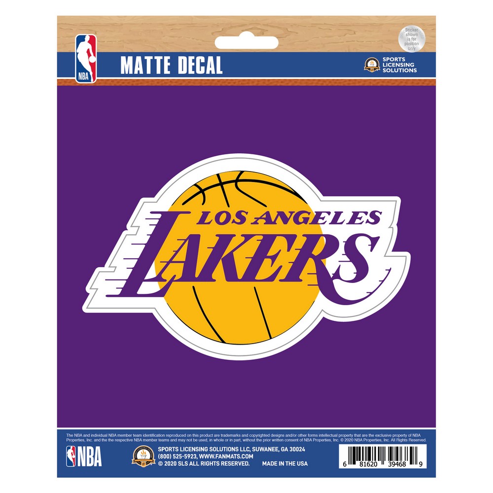| Los Angeles Lakers Matte Decal Sticker Includes 1 large decal Adhesive decals are die-cut to shape Printed on premium vinyl material UV resistant lamination for outstanding durability Great for cars, laptops, coolers and other hard surfaces Approximately 5in x 6.25in NBA - Los Angeles Lakers in California NBA National Basketball Association |