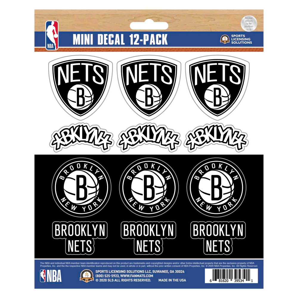 | Brooklyn Nets 12 Count Mini Decal Sticker Pack Includes12 small size decals on a 5in x 6in sheet Adhesive decals are die-cut to shape Printed on premium vinyl material UV resistant lamination for outstanding durability Great for cars, laptops, coolers and other hard surfaces Approximately 5in x 6.25in NBA - Brooklyn Nets in New York NBA National Basketball Association |