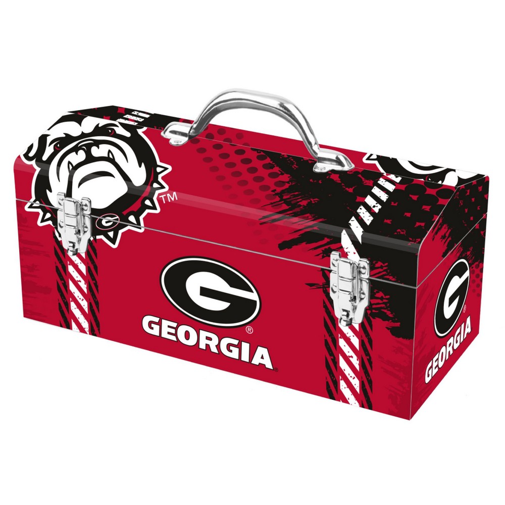 | Georgia Bulldogs Tool Box Constructed of high-strength steel Bright, vibrant print wraps entire tool box Perfect size for household jobs Dual latches keeps everything secure Comes with inner tool tray to keep all your items organized Measures 16.25 in. long x 7.1 in. wide x 7.75 in. high |