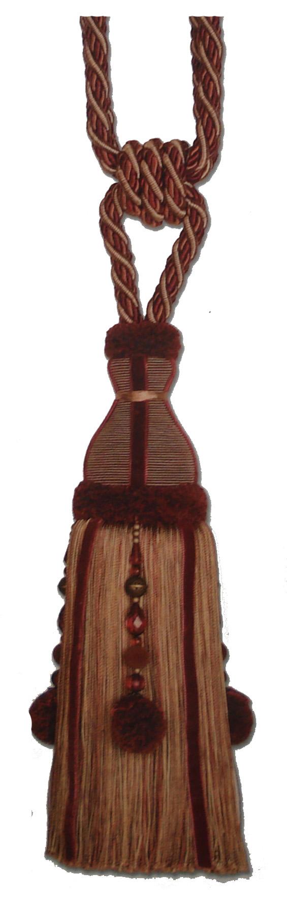 | Length: 10 1/2" - Spread: 34 1/2" Tassle Chair Tie Tieback Kasmir Exclusive Spread:34 4/16 Inches Overall Tassel Body:10 8/16 Inches Total Length:31 8/16 Inches Tassel Diameter:2 12/16 Inches |