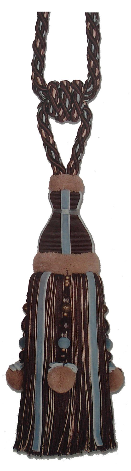| Length: 10 1/2" - Spread: 34 1/2" Tassle Chair Tie Tieback Kasmir Exclusive Spread:34 4/16 Inches Overall Tassel Body:10 8/16 Inches Total Length:31 8/16 Inches Tassel Diameter:2 12/16 Inches |