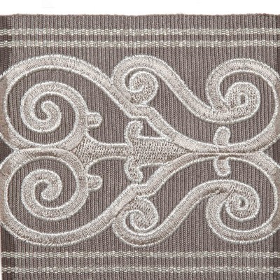 | Wide width fabric trim borders that you will have to see to believe. Beautiful colors and embroidery make this fabric tape perfect for trimming drapes, pillows and so much more. Grey Silver Trims |