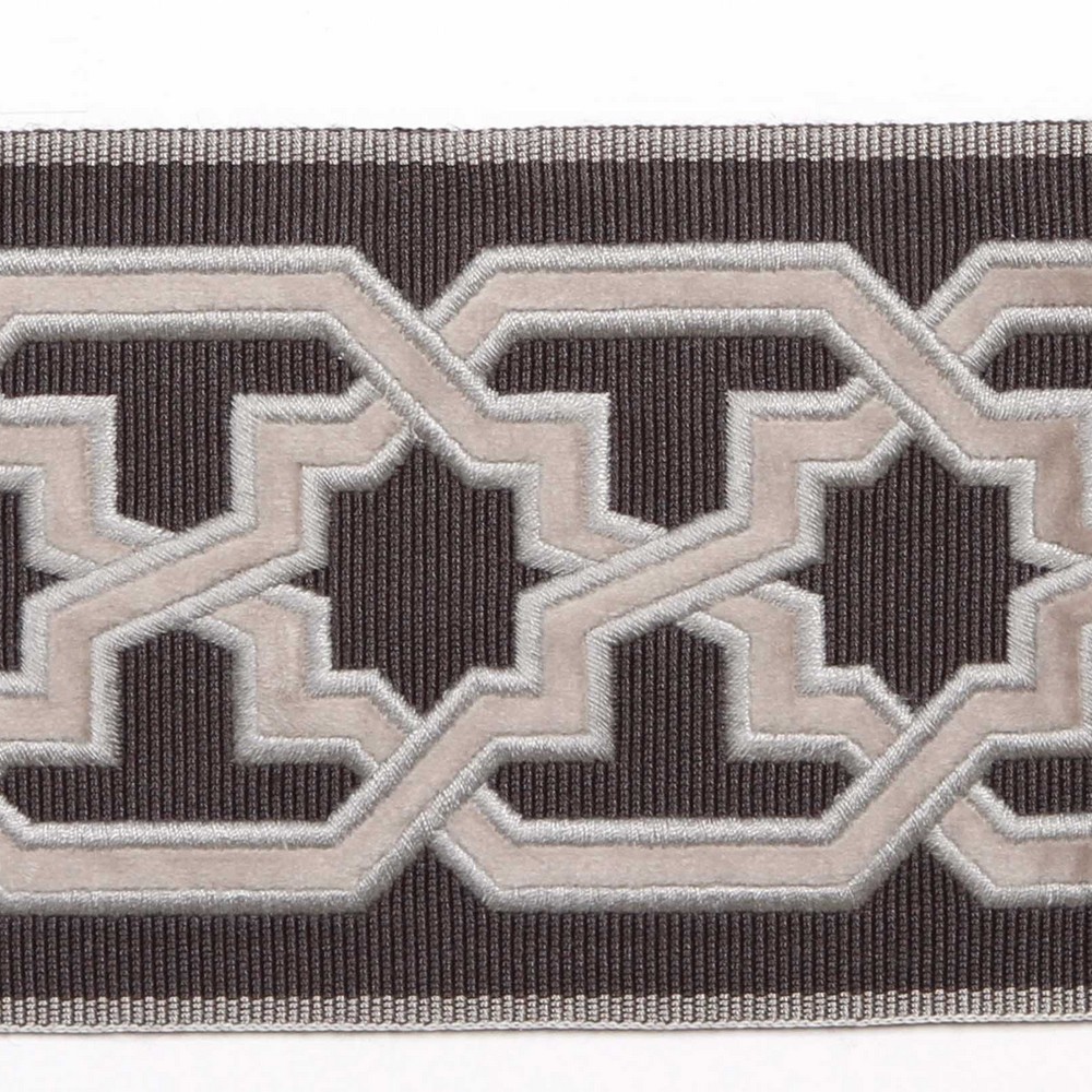 | Wide width fabric trim borders that you will have to see to believe. Beautiful colors and embroidery make this fabric tape perfect for trimming drapes, pillows and so much more. Grey Silver Trims |