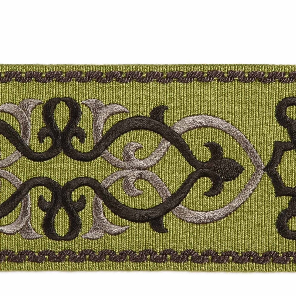 | Wide width fabric trim borders that you will have to see to believe. Beautiful colors and embroidery make this fabric tape perfect for trimming drapes, pillows and so much more. Green Trims |