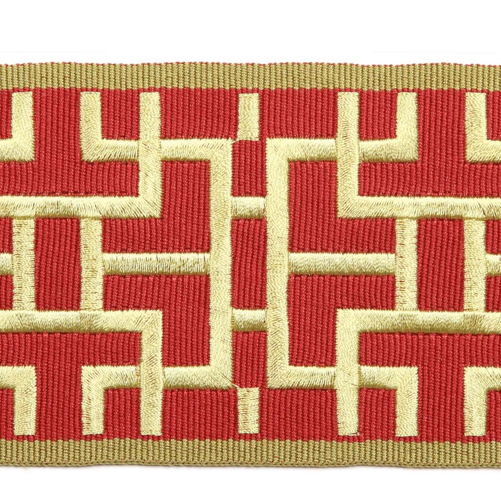 | Wide width fabric trim borders that you will have to see to believe. Beautiful colors and embroidery make this fabric tape perfect for trimming drapes, pillows and so much more. |