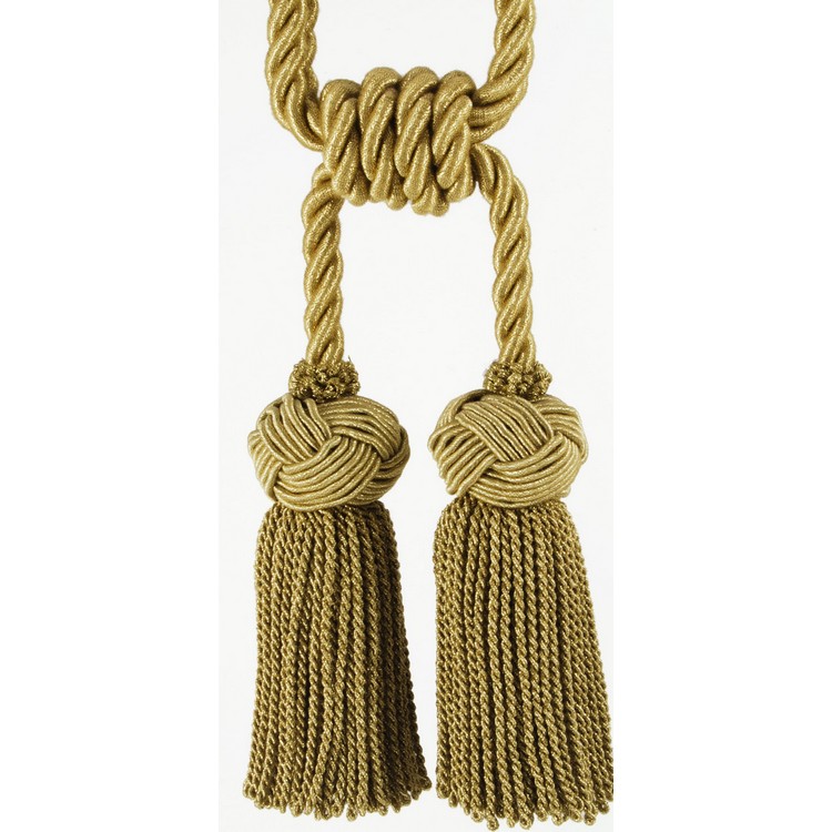 | Dbl Tassel Tieback Tassel Size: 5 in Cord Length: 84 in Cord Diameter: 3/8 in Spread: 32 in Brimar Trim Metallics |