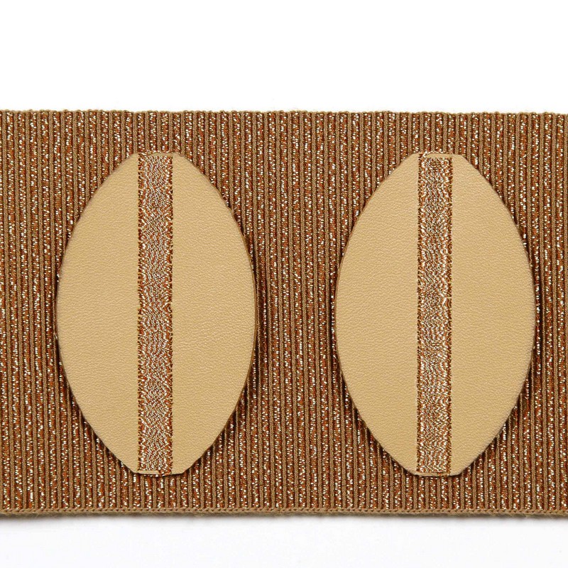 | 55% Faux Leather, 1% Polyester, 12% Metallic yarn, 10% Rayon, 22% Fibranne |