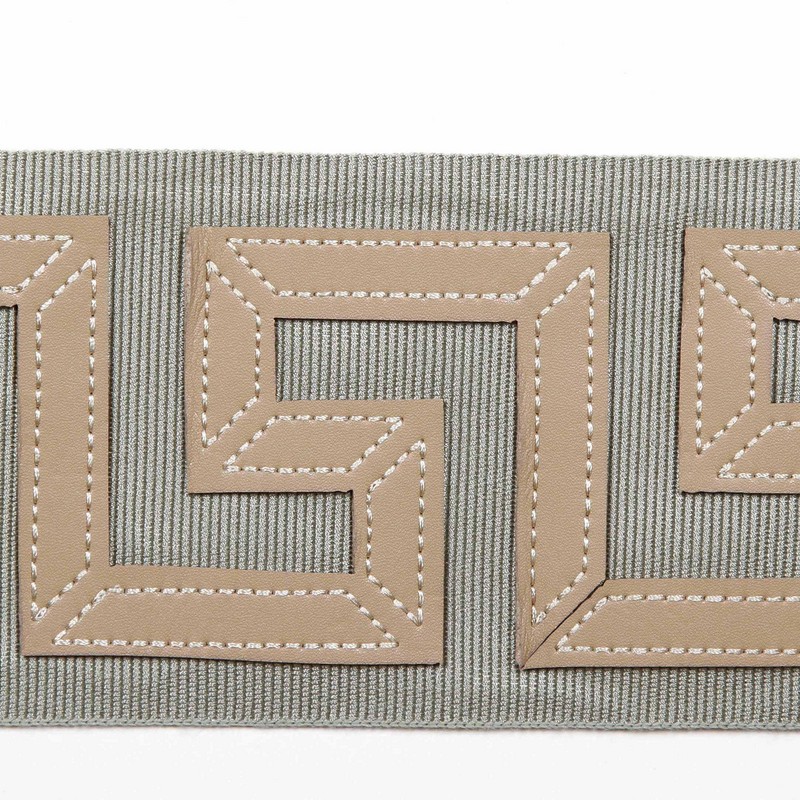 | Ridged fabric tape with faux leather accents. Greek Key style pattern. |