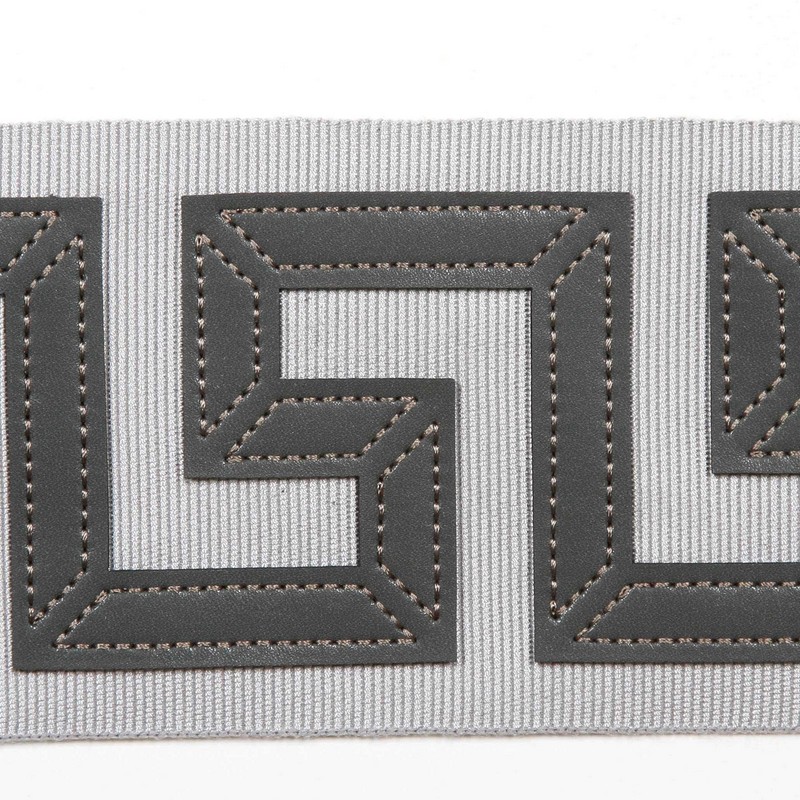| Ridged fabric tape with faux leather accents. Greek Key style pattern. |