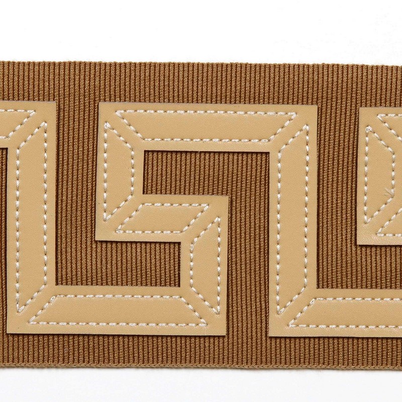 | Ridged fabric tape with faux leather accents. Greek Key style pattern. |
