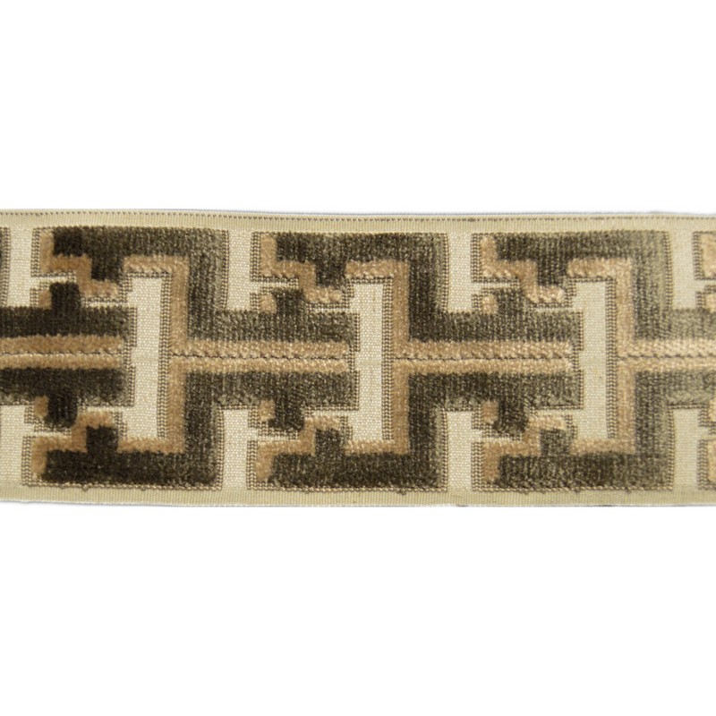 | 3.5 Inch Wide Tape with a geometric cut velvet pattern. The subtle color variations make this cut velvet tape a perfect choice for trimming draperies, pillows, bedding and more. |