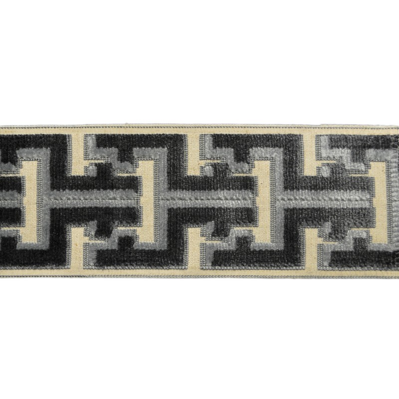 | 3.5 Inch Wide Tape with a geometric cut velvet pattern. The subtle color variations make this cut velvet tape a perfect choice for trimming draperies, pillows, bedding and more. |