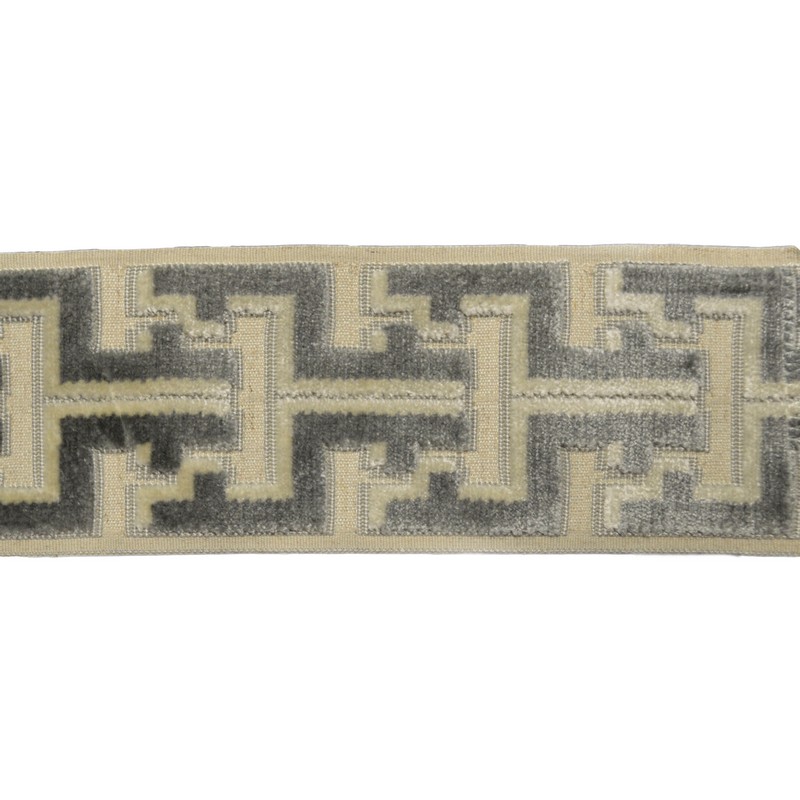 | 3.5 Inch Wide Tape with a geometric cut velvet pattern. The subtle color variations make this cut velvet tape a perfect choice for trimming draperies, pillows, bedding and more. |