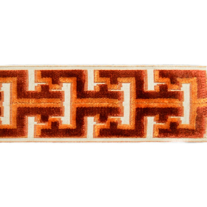 | 3.5 Inch Wide Tape with a geometric cut velvet pattern. The subtle color variations make this cut velvet tape a perfect choice for trimming draperies, pillows, bedding and more. |