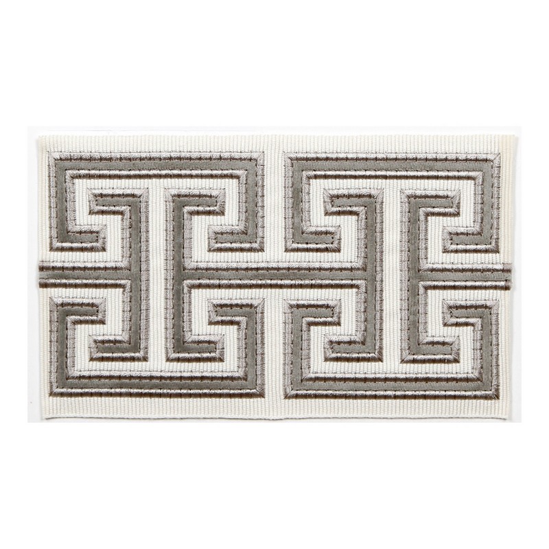| Embroidered with a geometric greek key design, this greek key fabric trim is a wide tape. |