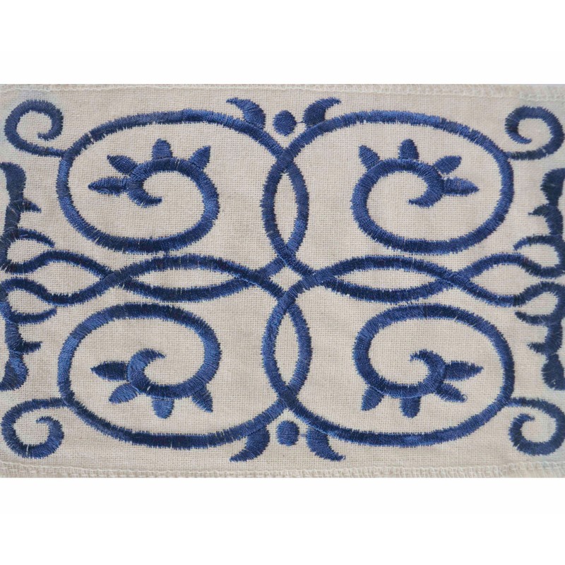 | Embroidered wide tape. Lovely scrolling fabric tape that will create a statement with the 5 inch width. |