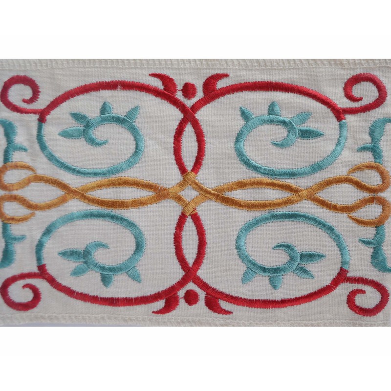 | Embroidered wide tape. Lovely scrolling fabric tape that will create a statement with the 5 inch width. |
