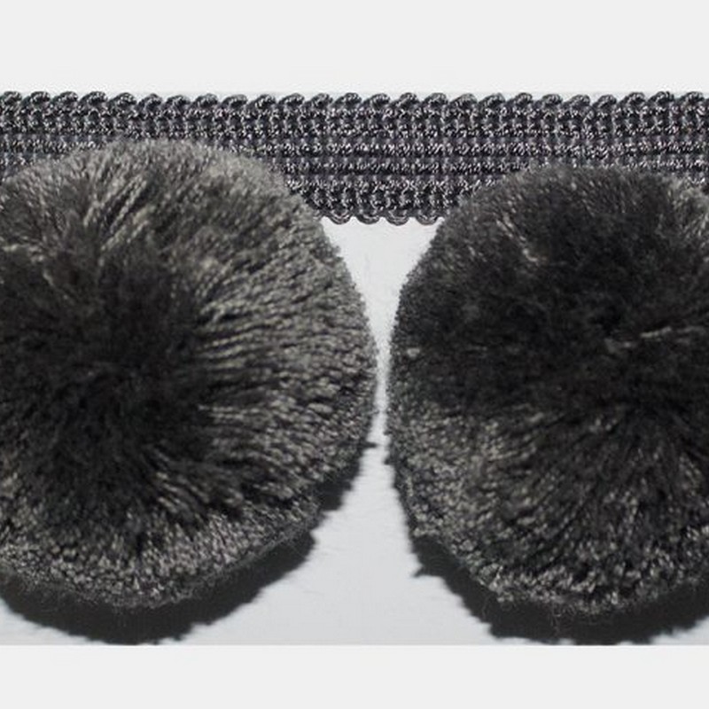 | Fluffy Puffy Pom Pom is a fun and flirty fabric trim that is 2.5 inches. Use this oversized pom pom fringe on draperies, pillows and more. Grey Silver Trims |