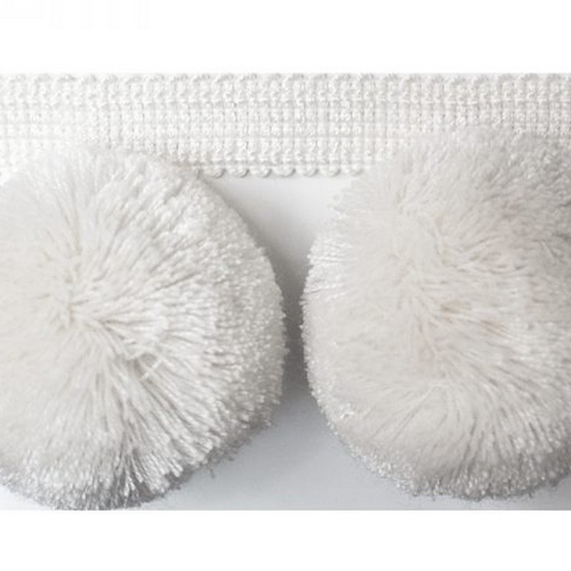 | Fluffy Puffy Pom Pom is a fun and flirty fabric trim that is 2.5 inches. Use this oversized pom pom fringe on draperies, pillows and more. |