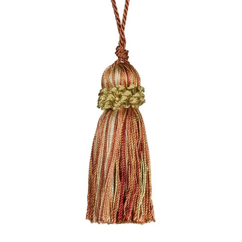 | Kasmir Trim Essentials Colors: Brown Gold Pink Yellow Key Tassel Kasmir Exclusive Rope Diameter: 1/16 Inches Overall Tassel Body:3 4/16 Inches Total Length:5 14/16 Inches Tassel Diameter:1 Inches |