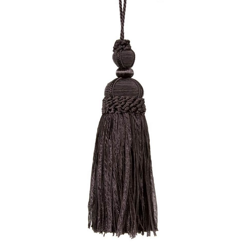| Kasmir Trim Essentials Colors: Brown Gray Key Tassel Kasmir Exclusive Rope Diameter: 1/16 Inches Overall Tassel Body:6 4/16 Inches |