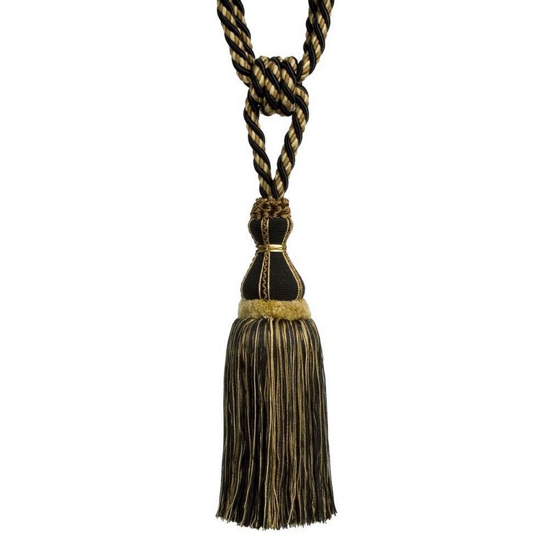 | Kasmir Trim Essentials Colors: Black Brown Black Tieback Kasmir Exclusive Rope Diameter: 8/16 Inches Spread:36 Inches Overall Tassel Body:9 8/16 Inches Total Length:30 Inches Tassel Diameter:2 4/16 Inches |
