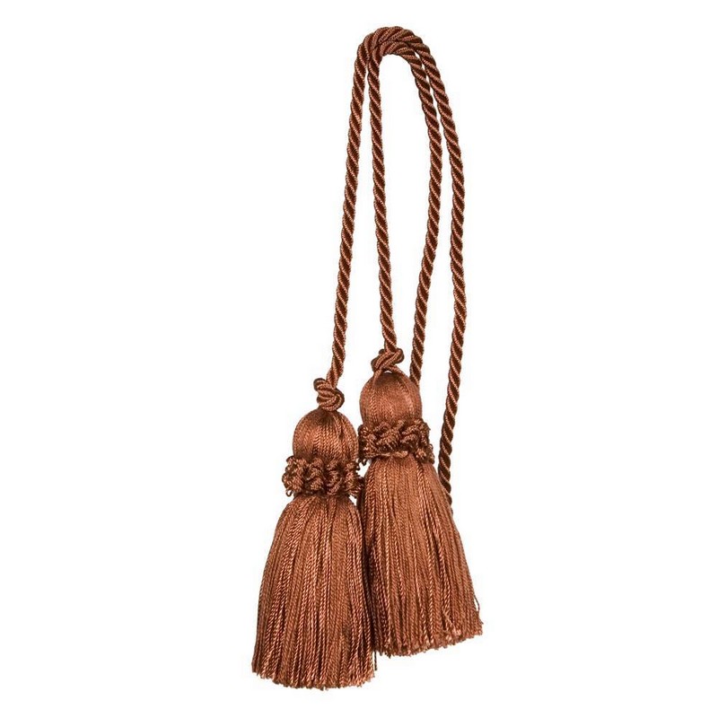 | Kasmir Trim Essentials Colors: Brown Orange Red Chair Tie Kasmir Exclusive Rope Diameter: 2/16in Tassel Body 3 4/16in Tassel Diameter: 1 in |