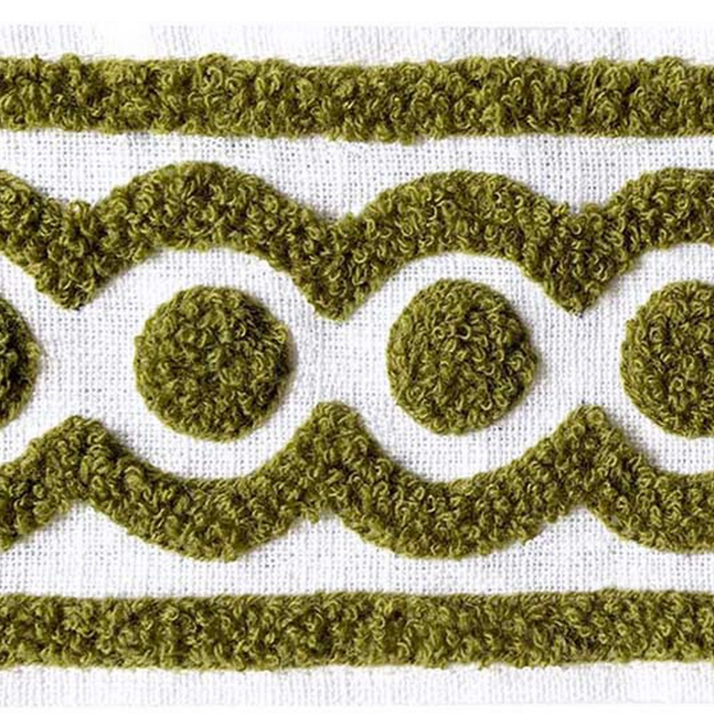 Brimar Trim 3.75in Linen Boucle Emroidered Tape BOU100 GRN