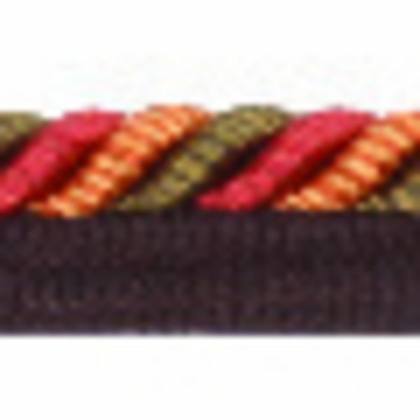 Bergamo Trim Collection Lip Cord Measures 2.25 inches from top band to bottom of fringe. Dark green, green, red/orange, gold/yellow/orange, and brown create this vibrant color combination. |