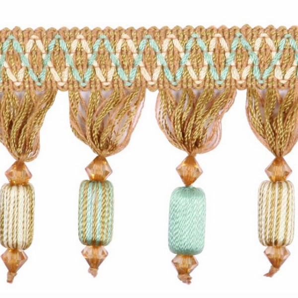 Bergamo Trim Collection Beaded Fringe Color includes aqua, gold and cream. |