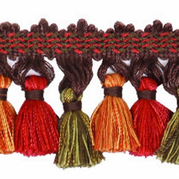 Bergamo Trim Collection Tassel Fringe Dark green, green, red/orange, gold/yellow/orange, and brown create this vibrant color combination. |