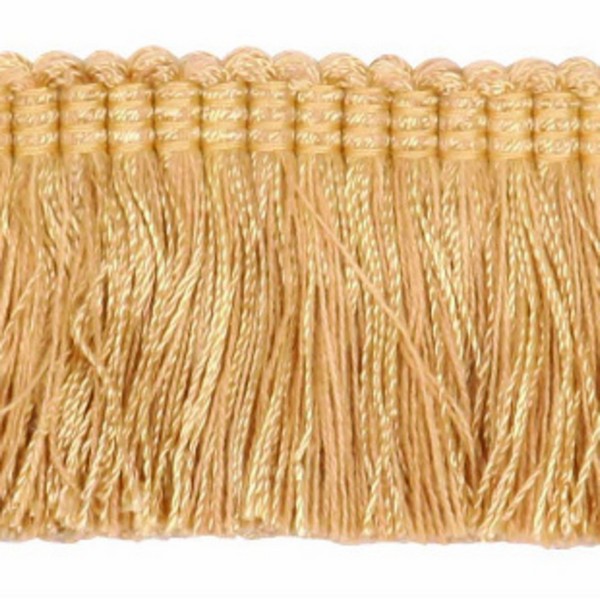 Bergamo Trim Collection Classic Gold Brush Fringe Measures 2.25 inches from top band to bottom of fringe. |