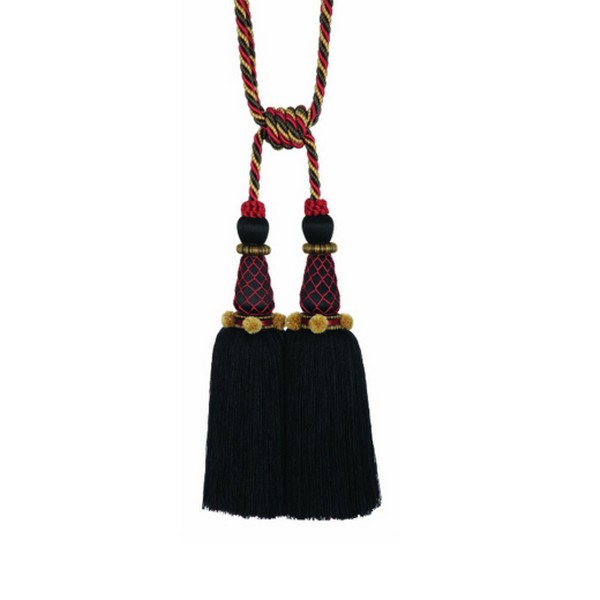 Bergamo Trim Collection Tassel Rope: 20in Tassel Body: 11.5in Overall Size: 21.5in Black, Olive, Red/Orange and Beige/Gold |
