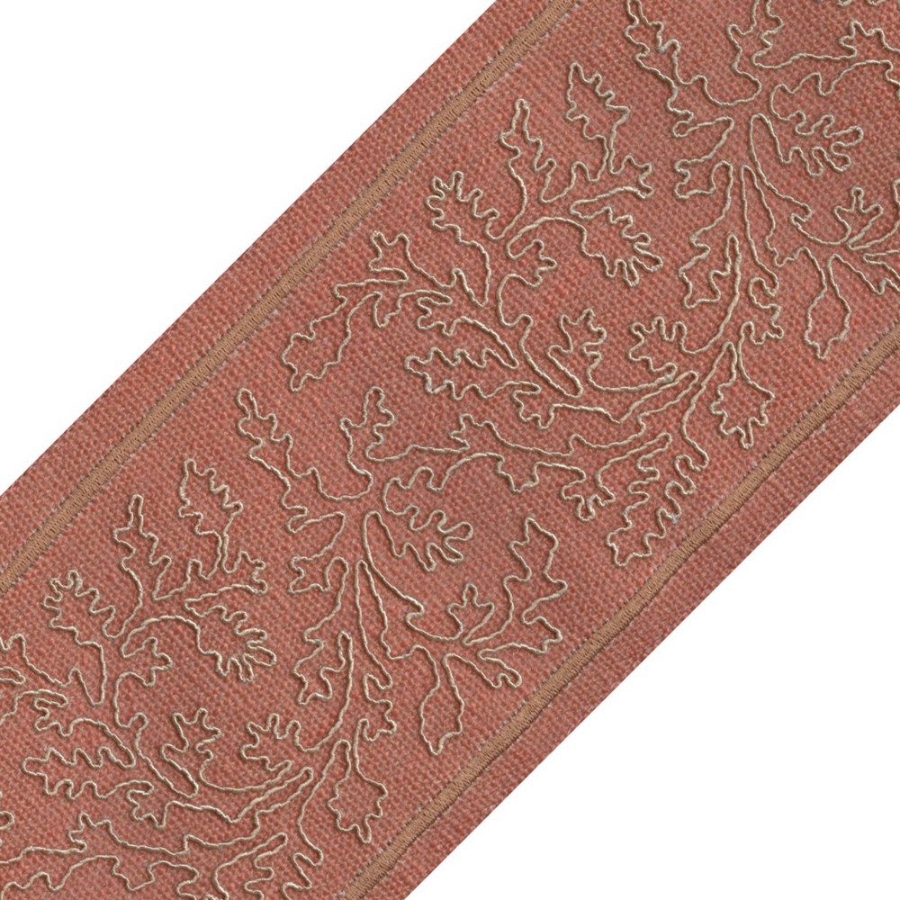 Add a touch of timeless charm with this wide embroidered fabric tape, featuring a graceful scrolling oak leaf pattern.