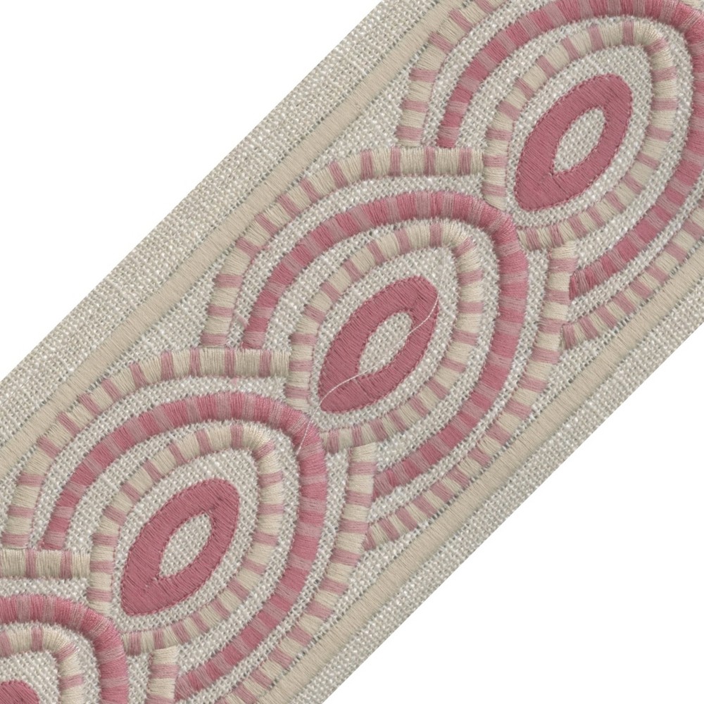 | Bring modern texture to your décor with this wide embroidered fabric tape, showcasing a geometric circular pattern accented by soft ovals. Made from a polyester-cotton blend, it features a rustic woven finish that pairs beautifully with both contemporary and transitional styles. Use it to trim pillows, furniture, shades, and draperies for a clean, tailored look with subtle visual interest. |