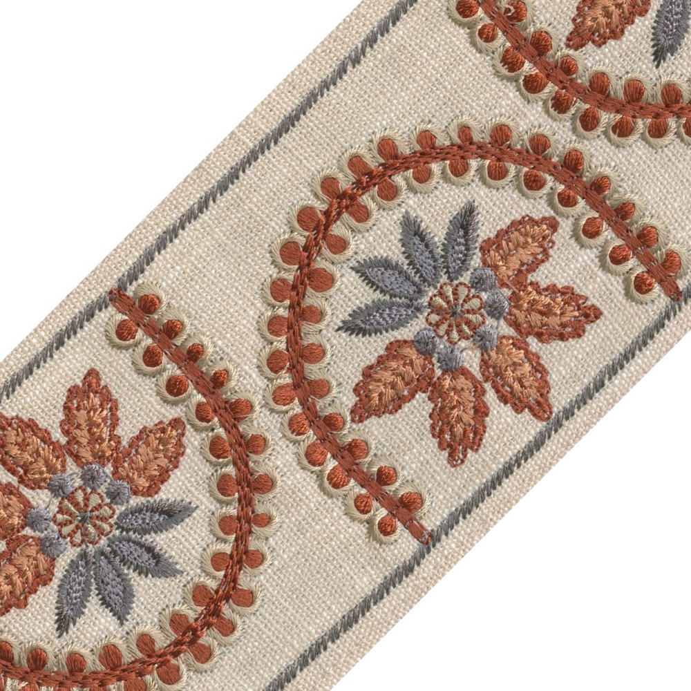 | Add a refined touch to your décor with this wide embroidered fabric tape, featuring a floral motif rendered in a clean geometric style. Its polyester-cotton blend offers a rustic woven texture that balances softness with structure. Perfect for trimming pillows, furniture, shades, and draperies, this decorative tape brings a modern botanical flair to any space. |