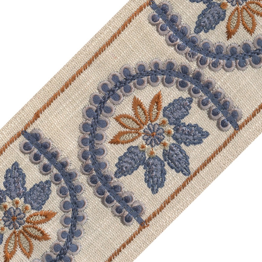 | Add a refined touch to your décor with this wide embroidered fabric tape, featuring a floral motif rendered in a clean geometric style. Its polyester-cotton blend offers a rustic woven texture that balances softness with structure. Perfect for trimming pillows, furniture, shades, and draperies, this decorative tape brings a modern botanical flair to any space. |