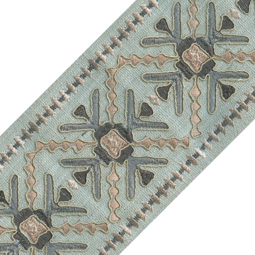| Celebrate global design with this wide embroidered fabric tape, featuring a snowflake-inspired motif that forms a striking southwestern diamond pattern. Crafted from a polyester-cotton blend, its rustic woven texture adds depth and authenticity to any space. Perfect for trimming pillows, furniture, shades, and draperies, this decorative tape brings a bold ethnic flair with a modern edge. |