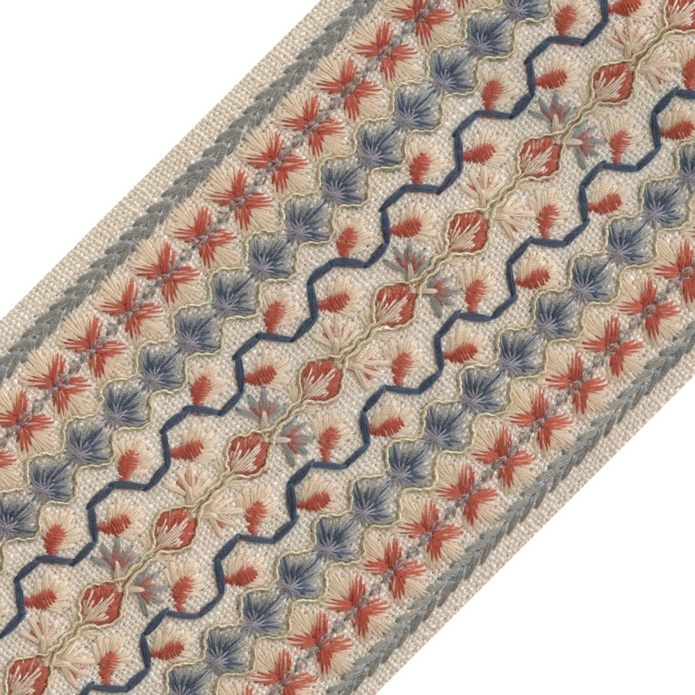 | Add worldly character to your décor with this wide embroidered fabric tape, featuring an ethnic-inspired stripe design that blends global motifs with artisanal charm. Woven from a polyester-cotton blend, its rustic texture enhances the handcrafted look and feel. Perfect for trimming pillows, furniture, shades, and draperies, this decorative tape brings a rich, cultural accent to any space. |