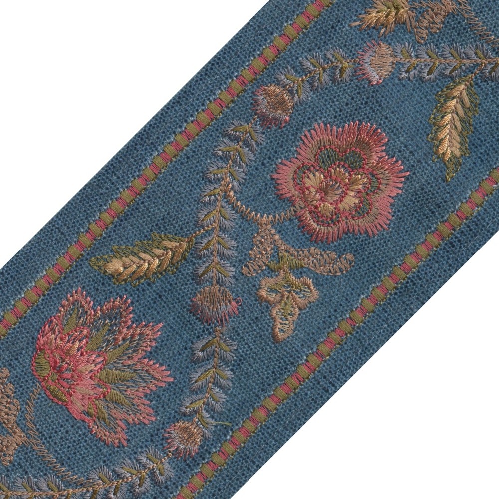| Add graceful sophistication to your décor with this wide embroidered fabric tape, featuring a lovely scrolling vine intertwined with classic Jacobean floral motifs. Crafted from a polyester-cotton blend, its rustic woven texture brings depth and timeless charm to any space. Perfect for trimming pillows, furniture, shades, and draperies, this decorative tape blends romantic movement with heritage-inspired elegance. |