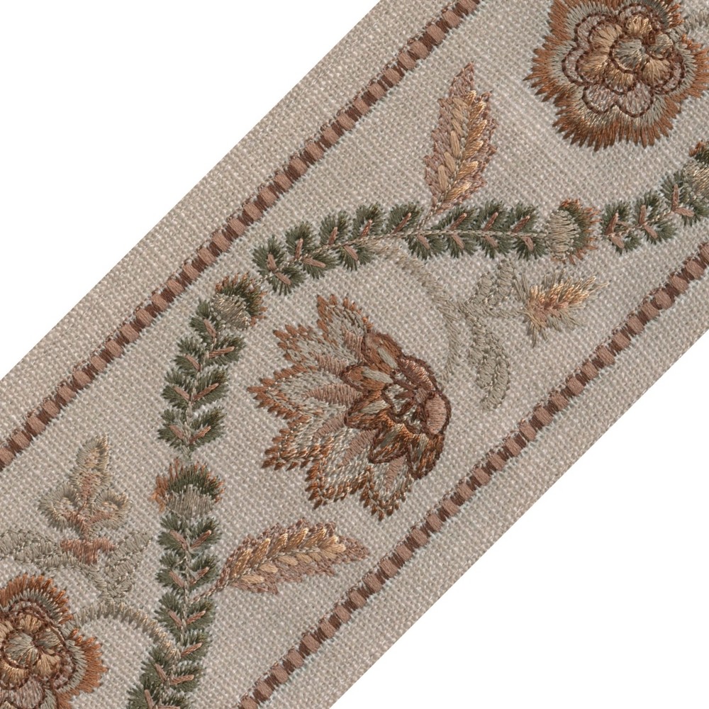 | Add graceful sophistication to your décor with this wide embroidered fabric tape, featuring a lovely scrolling vine intertwined with classic Jacobean floral motifs. Crafted from a polyester-cotton blend, its rustic woven texture brings depth and timeless charm to any space. Perfect for trimming pillows, furniture, shades, and draperies, this decorative tape blends romantic movement with heritage-inspired elegance. |