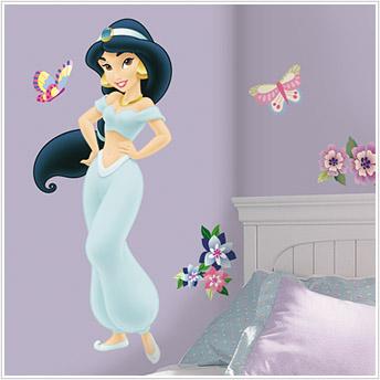 | Bring all the wonder of Jasmine home and into a little girl's room with this giant wall decal. This Jasmine decal is perfect for any girl with an adventurous spirit, while parents will appreciate how easily RoomMates apply and remove without ever leaving behind any sticky residue or damaging the surface. You can even add some sparkle to Jasmine's clothing or jewelry with any of the included 33 peel & stick gems! |